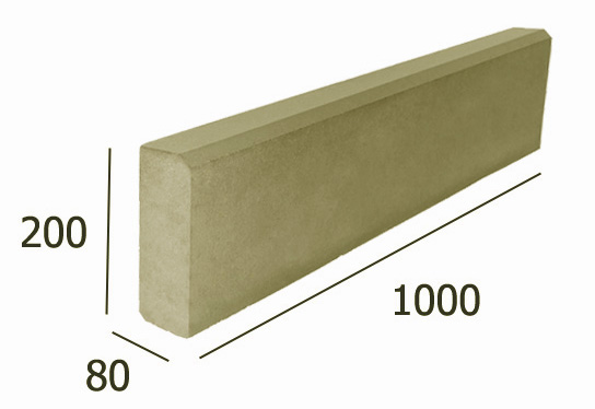 Бордюр бетонный бортовой представлен в размерах:1000х200х80 мм и 500х200х60 мм.