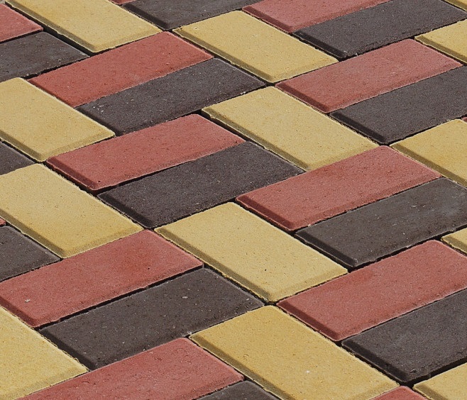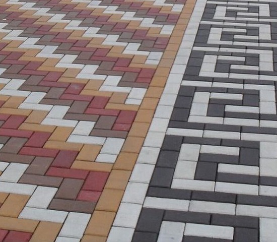 Тротуарная плитка изготавливается в различных цветовых вариантах: серый, красный, коричневый, черный, желтый. Различные комбинации этих цветов позволяют создавать интересные дизайнерские решения.