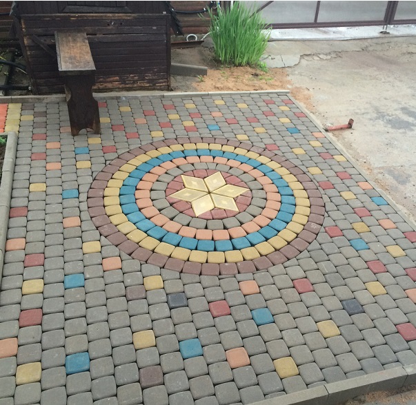 Тротуарная плитка изготавливается в различных цветовых вариантах: серый, красный, коричневый, черный, желтый. Различные комбинации этих цветов позволяют создавать интересные дизайнерские решения.