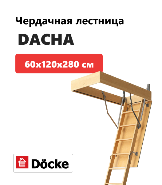 Чердачные лестницы Döcke - деревянные складные трёхсекционные чердачные лестницы с люком. Состоят из хвойных пород дерева, полимерных материалов и металлической фурнитуры. Чердачная лестница DACHA – самая компактная и лёгкая модель в линейке «Дёке» (ее вес - всего 22 кг). Это идеальный выбор для дачи или летнего загородного дома с высотой потолков до 2,8 м.…