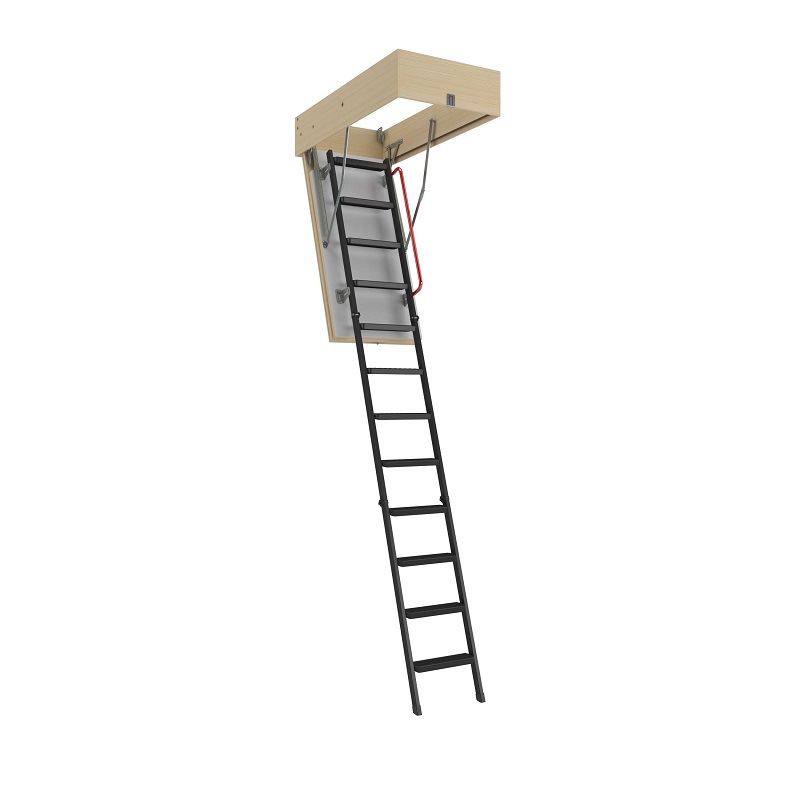Улучшенная модель металлической складной лестницы. Отличительной чертой LTM является утепленная крышка люка белого цвета. Толщина крышки люка 66 мм, 60 мм из которых – утеплитель. Это позволяет устанавливать лестницу даже в помещениях со значительными перепадами температур.