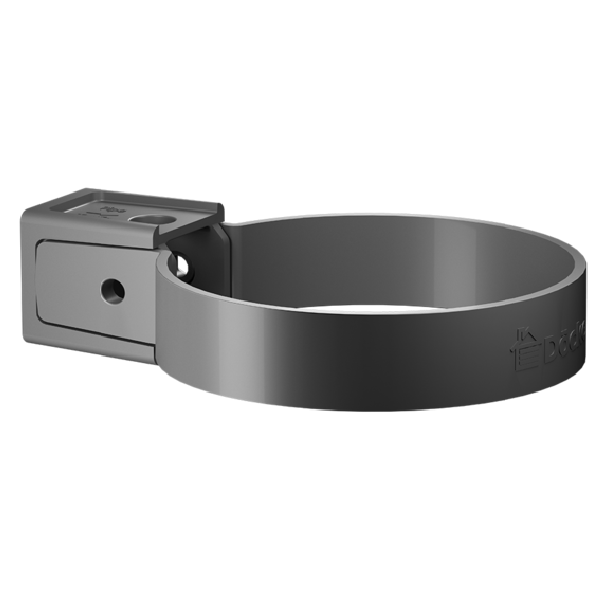Предназначен для крепления системы на фасаде здания. Имеет два положения: 1. «труба» и 2 «фитинги». В положении «Труба» хомутом фиксируются трубы к стене дома, а в положении «Фитинг» остальные элементы водосливной части водосточной системы Docke (колено, муфта и наконечник). Трубы охватываются хомутом неплотно для возможности хода при линейном расширении, остальные элементы обтягиваются вплотную.