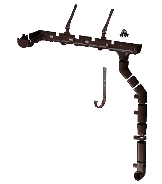 Элементы водостока соединяются на уплотнителях, без клея и герметика. Собрать водосток под силу даже непрофессионалу.