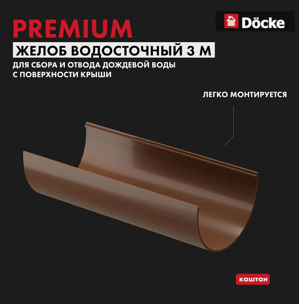 Предназначен для сбора и отвода дождевой воды с поверхности крыши. Обладает высокой пропускной способностью и может использоваться на крышах больших строений. При монтаже необходимо рассчитать и закрепить необходимое количество кронштейнов на основании кровли. А сам желоб должен иметь небольшой уклон в сторону воронки. Вот уже более десяти лет ДЁКЕ является…