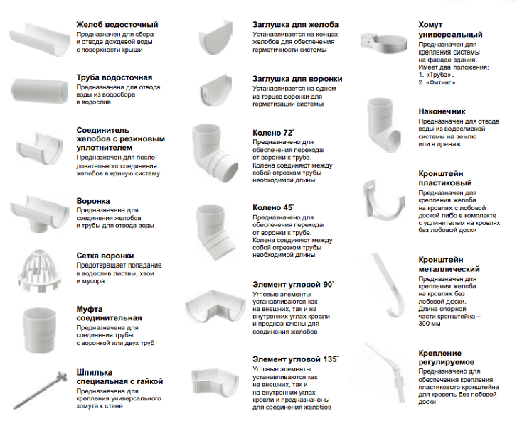 Элементы водостока соединяются на уплотнителях, без клея и герметика. Собрать водосток под силу даже непрофессионалу.