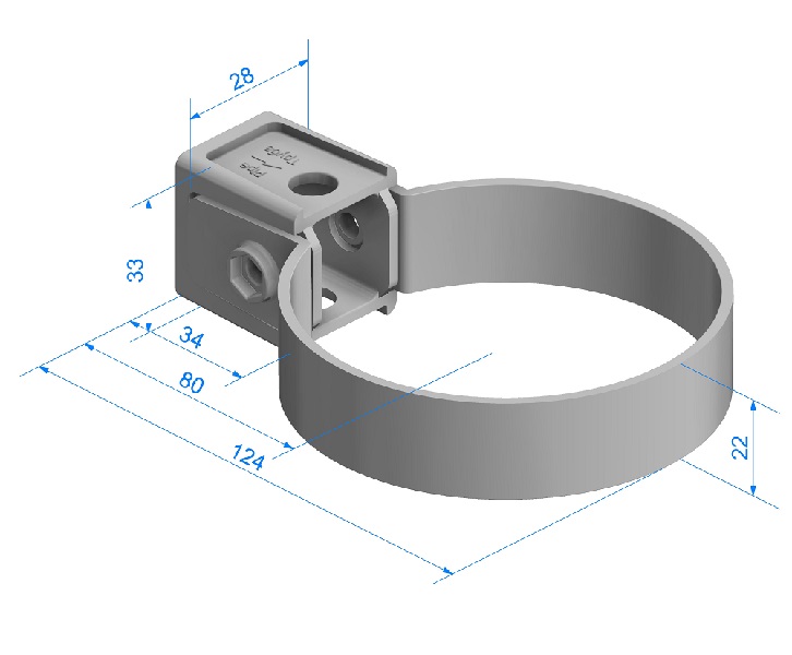 Предназначен для крепления системы на фасаде здания. Имеет два положения: 1. «труба» и 2 «фитинги». В положении «Труба» хомутом фиксируются трубы к стене дома, а в положении «Фитинг» остальные элементы водосливной части водосточной системы Docke (колено, муфта и наконечник). Трубы охватываются хомутом неплотно для возможности хода при линейном расширении, остальные элементы обтягиваются вплотную.