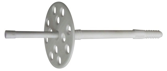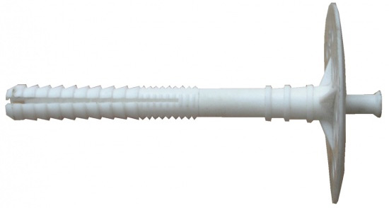 Предназначен для крепления пенопласта толщиной до 130 мм к бетону, полнотелому кирпичу, природному камню, силикатному кирпичу на цоколе или вентилируемом фасаде, а также на фасадах под штукатурку в зданиях с высотой стен до 8 метров. За счет широкой шляпки дюбель часто называют "парашют" или тарельчатый дюбель. Конструкция широкой шляпки дюбеля плотно прижимает…
