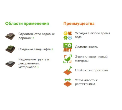 Экоспан Гео Садовый рекомендуется применять для разделения грунта и декоративных материалов. Допустимо применение при строительстве садовых дорожек и создании ландшафта.