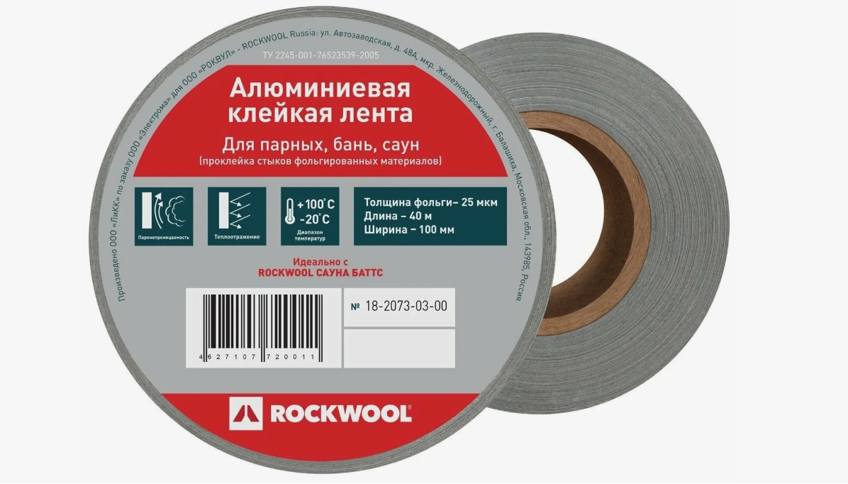 Алюминиевая клейкая лента ROCKWOOL предназначена для проклейки швов (стыков) между плитами САУНА БАТТС, КАМИН БАТТС.