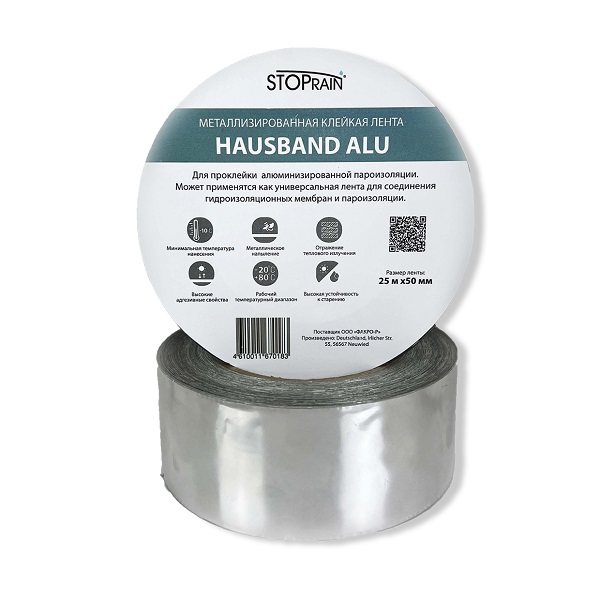 HAUSBAND ALU предназначена для соединения полотен пароизоляционных пленок между собой и их примыкания к конструкциям кровли и фасада - Для проклейки алюминизированной пароизоляции. - Может применятся как универсальная лента для соединения гидроизоляционных мембран и пароизоляции. Приемущества: - минимальная температура нанесения -10 - металлическое напыление -…