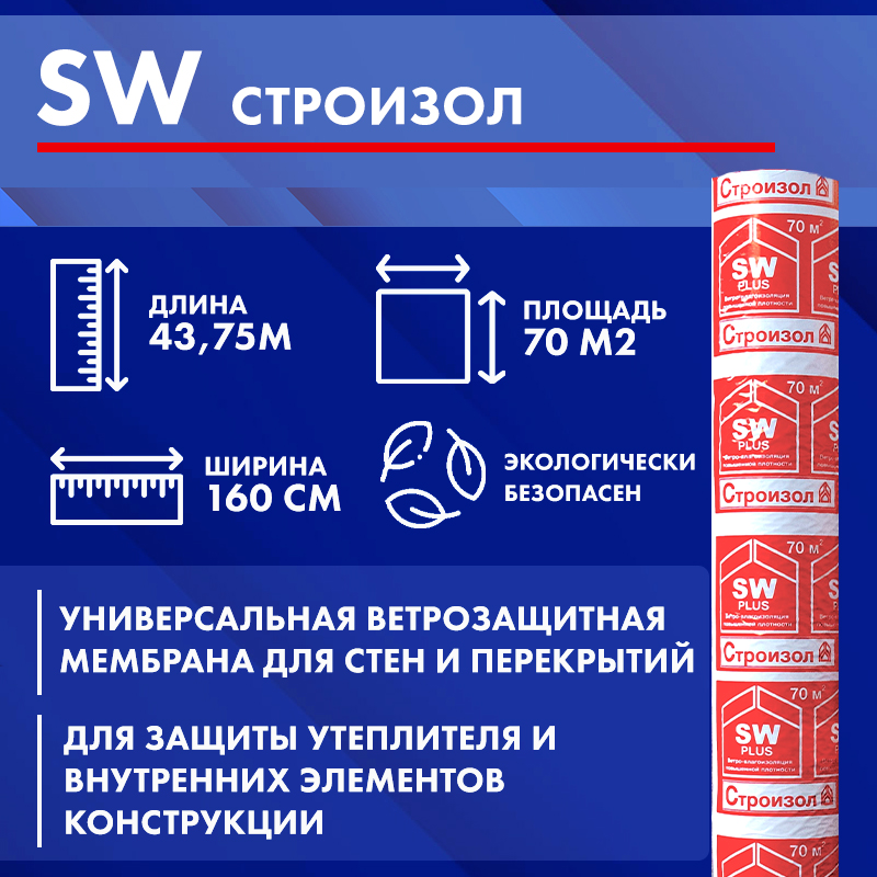СТРОИЗОЛ SW - Универсальная ветрозащитная мембрана для стен и перекрытий.