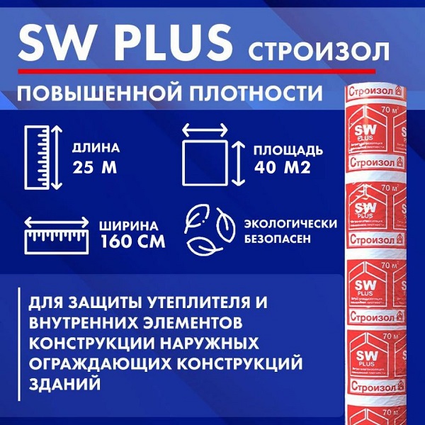 Ветроизоляционные пленки Строизол SW Plus предназначены для защиты утеплителя и внутренних элементов конструкции, наружных ограждающих конструкций зданий от выветривания и потери тепла при неплотной укладке волокнистой теплоизоляции.