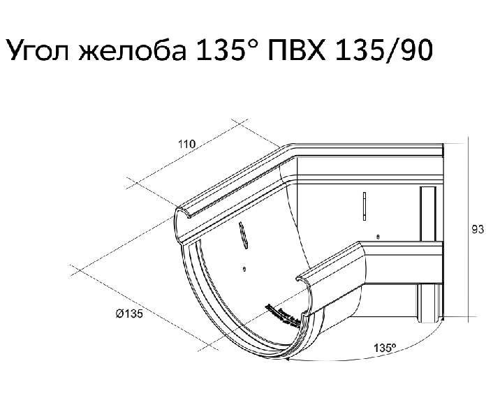 Угол желоба соединяет два желоба под углом 135° как на внешних, так и на внутренних углах фасада.
