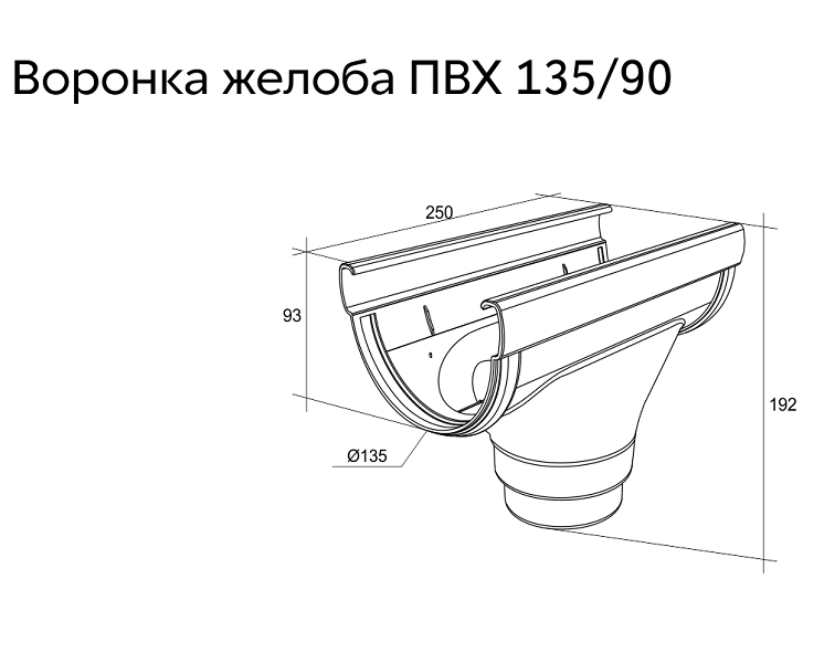 Воронка желоба обеспечивает герметичный отвод воды с желоба в водосточную трубу.