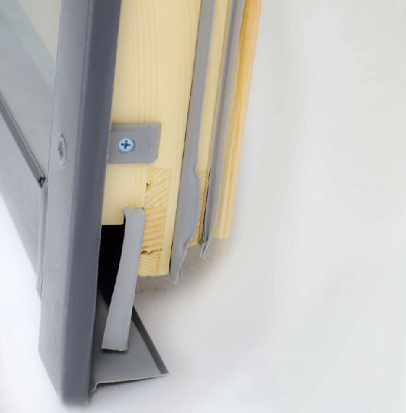 - Внешний изоляционный оклад обеспечивает герметичность соединения оконного блока с кровельным покрытием. Предусмотрены специализированные оклады для плоских и профилированных кровельных покрытий.