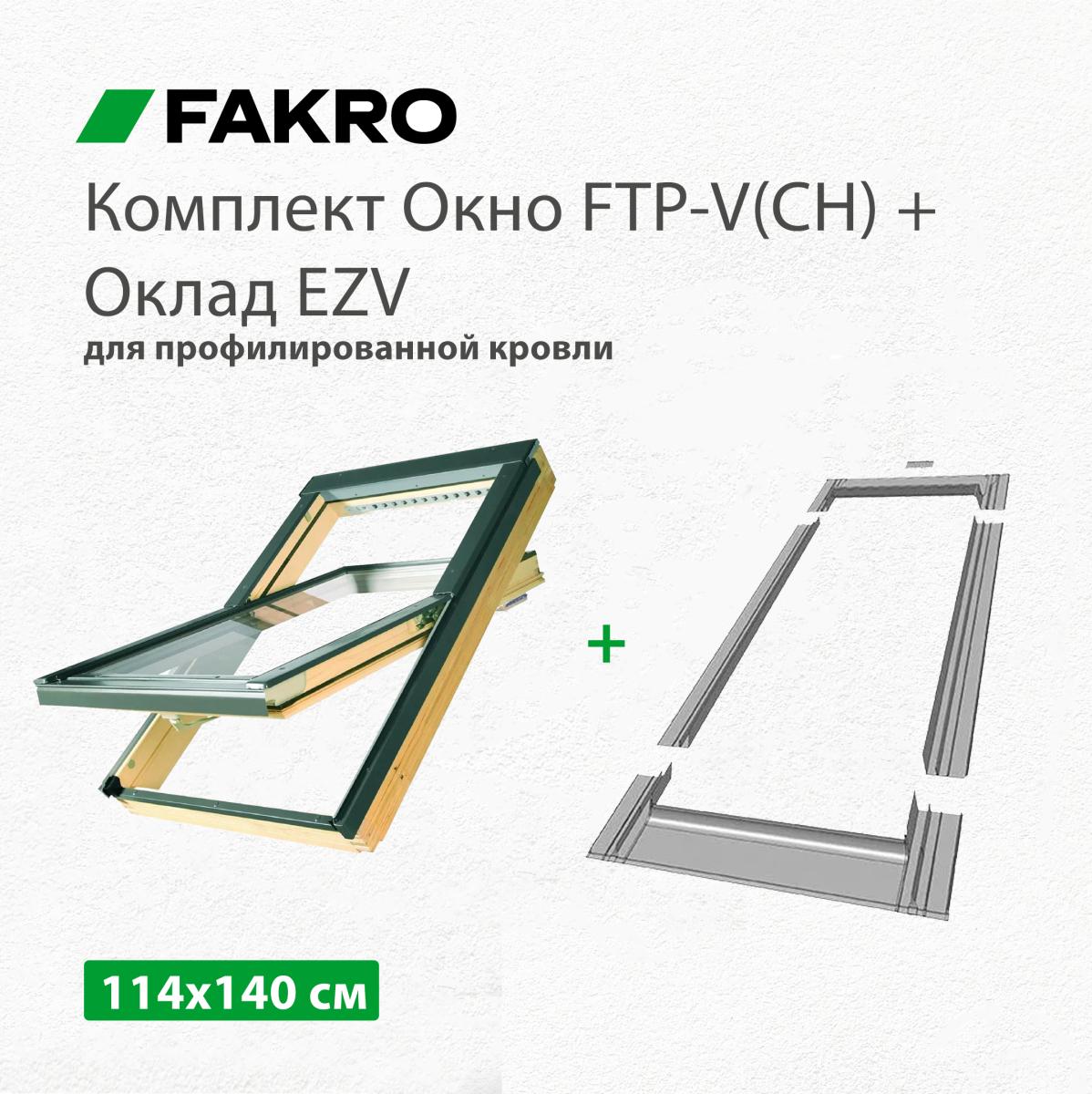 Окно мансардное Fakro FTP-V (CH) 114х140 + Оклад EZV для профилированных кровельных материалов (комплект)