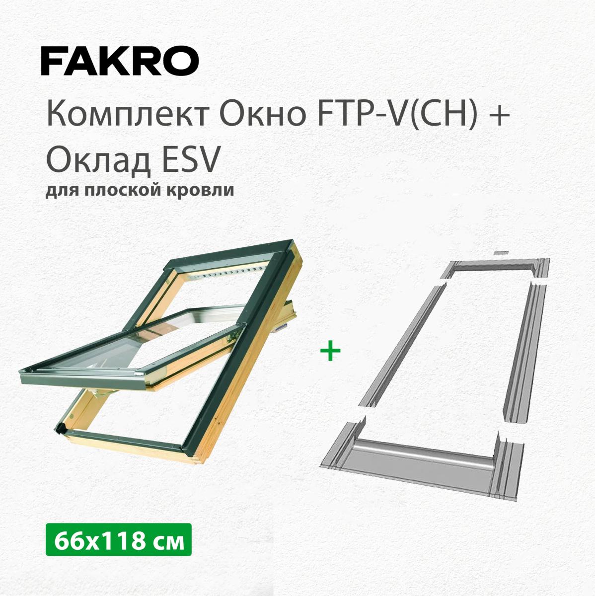 Окно мансардное Fakro FTP-V (CH) 66х118 + Оклад ESV для плоских кровельных материалов (комплект)