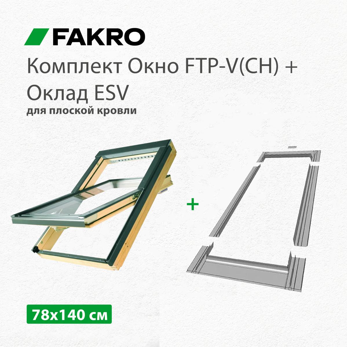 Окно мансардное Fakro FTP-V (CH) 78х140 + Оклад ESV для плоских кровельных материалов (комплект)