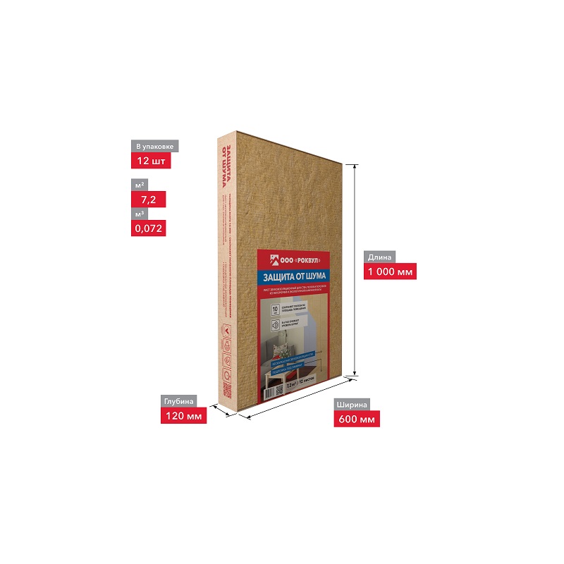 Лист звукоизоляционный РОКВУЛ 1000х600х10мм 12шт/7,2м2/0,072м3/уп