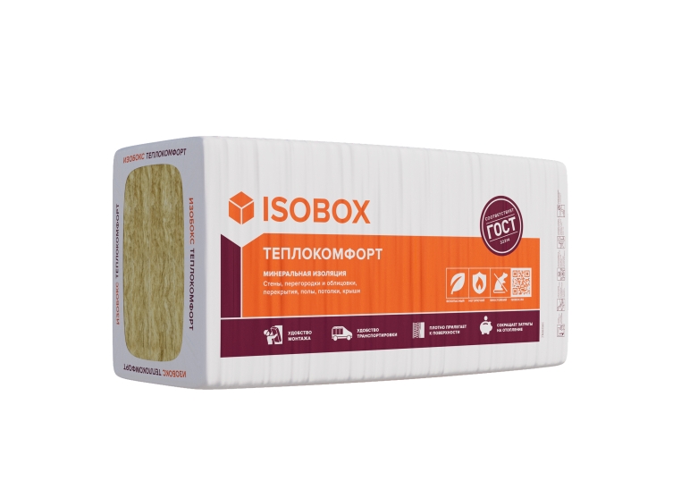 ИЗОБОКС Теплокомфорт  - негорючая минеральная тепло- и звукоизоляция в форме плит.