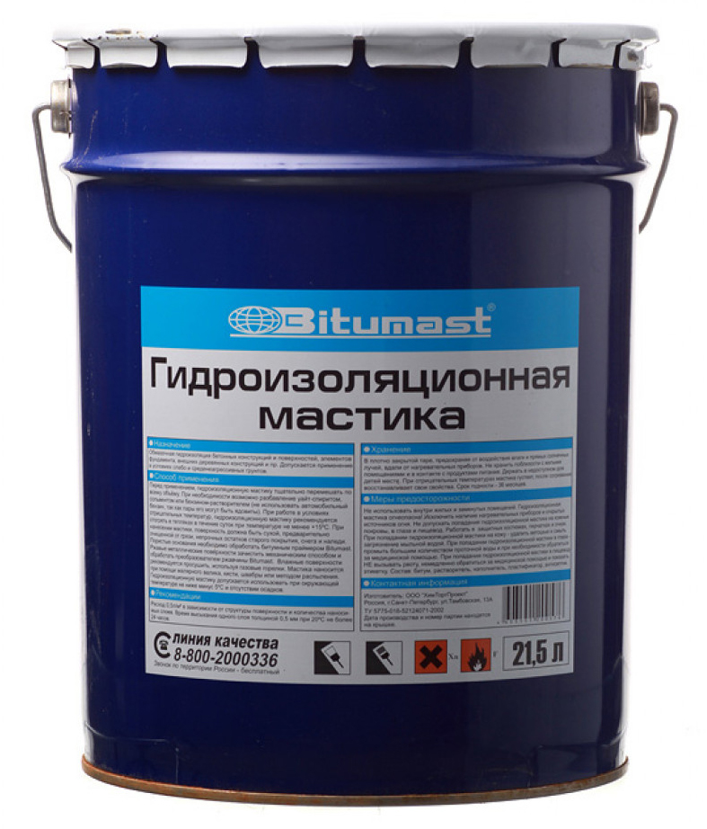 Предназначена для обмазочной гидроизоляции бетонных поверхностей, подвалов, бассейнов, элементов фундамента, деревянных конструкций и пр. Технические характеристики: Время высыхания одного слоя при 20ºС не более 24 часов Температура размягчения не менее +70ºС Толщина слоя: 0,5 мм. Расход: 0,5 л/м². Покупая стройматериалы в BLOKspb, вы получаете: - бесплатный расчет…