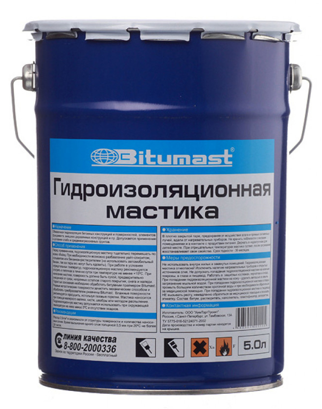 Мастика Bitumast гидроизоляционная 4,2кг/5лМастика Bitumast гидроизоляционная 4,2кг/5л