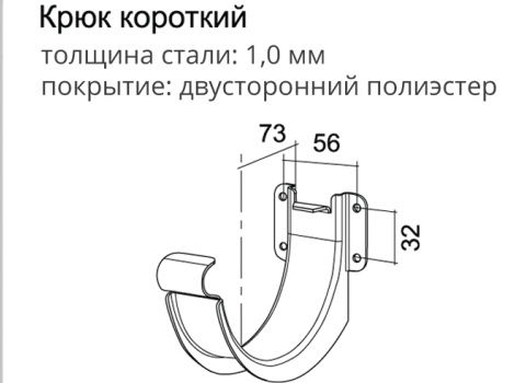 Крюк короткий предназначен для крепления желоба на лобовую доску или торцевую часть стропил. Выполнен из оцинкованной стали (толщина 1 мм) с покрытием полиэстер. Не требует демонтажа кровельных листов. Водосточная система 125х90 — оптимальная система для малоэтажного коттеджного строительства. За счет углубленного желоба (на 25 % по сравнению с другими…