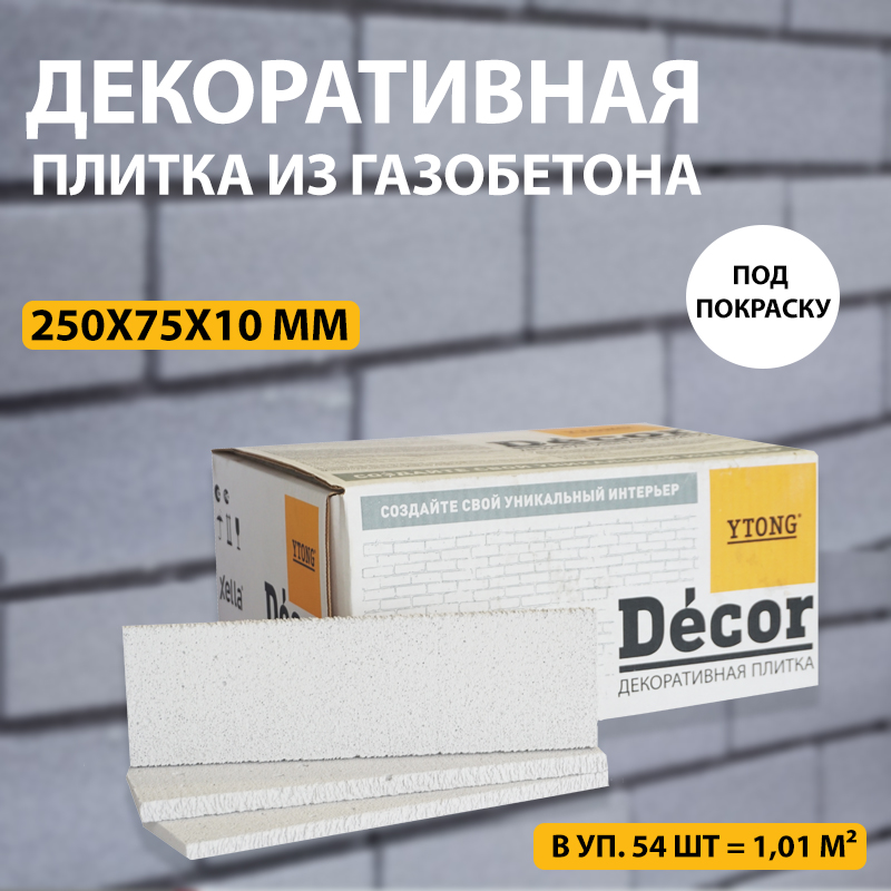 YTONG Decor – легкая декоративная плитка из газобетона под покраску. Оригинальное решение подходит для декорирования интерьеров и отделки кладки под любой дизайн. Она поможет реализовать дизайн интерьера в стилях лофт, индастриал, авангард, пэчворк, прованс. Представлена в размере: 250х75х10мм. Плитку легко обрезать под нужные размеры ножовкой c мелким…