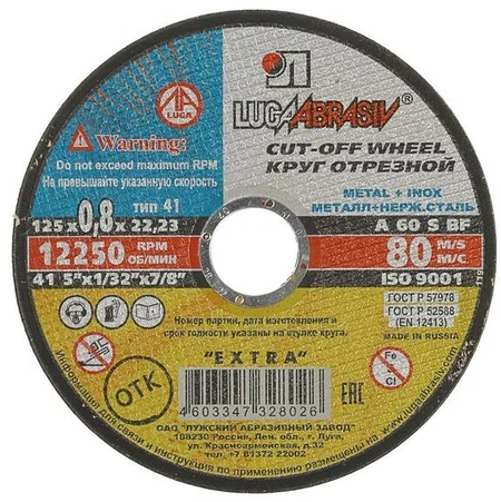 Диск отрезной 125мм. 0,8мм. 22 Луга Абразив по металлу является расходным материалом для стационарных и мобильных инструментов для абразивной обработки металла. Применяется для резки изделий из различных видов сталей, в том числе легированных. Посадочный размер 22мм, совместим с большинством УШМ. Продается в количестве 25шт. Круг отрезной по металлу - незаменимый…