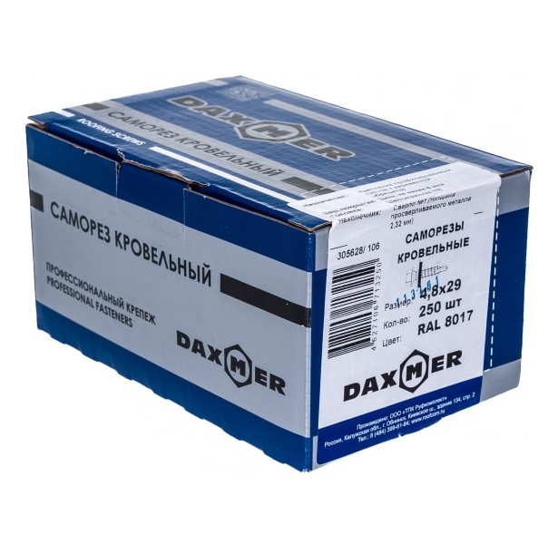 Саморезы кровельные 4,8х29мм RAL8017 250штСаморезы кровельные 4,8х29мм RAL8017 250штСаморезы кровельные 4,8х29мм RAL8017 250шт