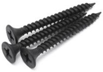 Саморезы имеют потайную головку с крестообразным шлицем PH2, острый наконечник и частую резьбу. Производятся из углеродистой стали с последующим оксидированием для защиты от коррозии. Саморезы имеют полную резьбу.