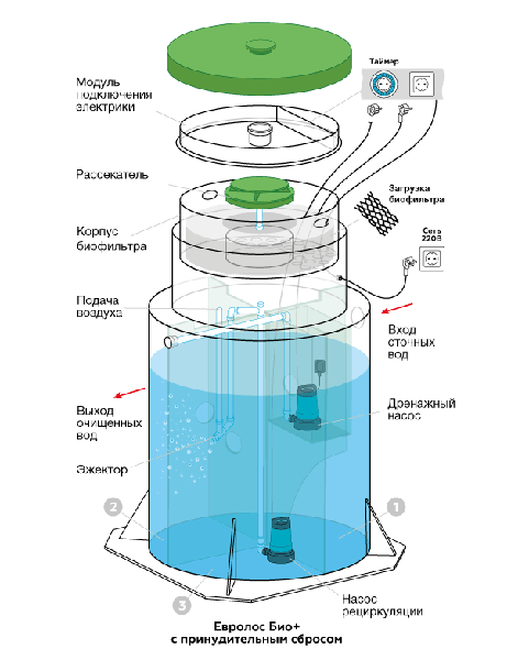 Евролос БИО - Насосная автономная станция очистки бытовых стоков для загородного участка с сезонным или постоянным проживанием.