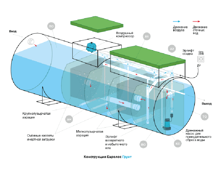 Евролос ГРУНТ - Компрессорная аэрационная установка премиум класса для монтажа и работы в условиях высокого уровня грунтовых вод. Канализационные очистные сооружения построенные на базе Евролос Грунт позволяют сбрасывать на рельеф очищенные хозяйственно-бытовые сточные воды от населённых пунктов или отдельно стоящих индивидуальных домов: - Не подключенных к…