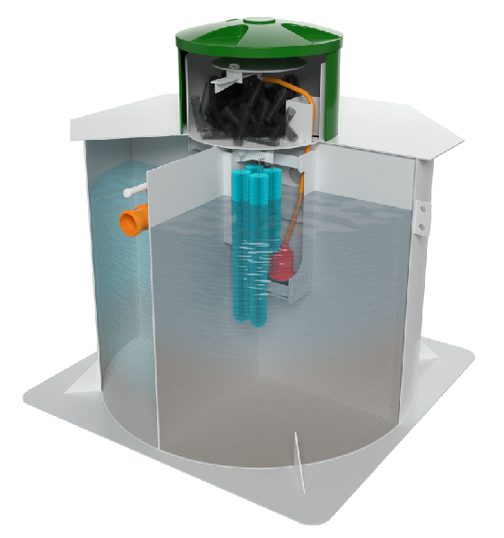 Для удобства монтажа и обслуживания, станция укомплектована быстро съемными коннекторами для подключения насосов к элементам станции (система орошения биологической загрузки,принудительный сброс) полками для установки насосов, крепления для ершовой загрузки.  Цилиндрическая форма станции равномерно распределяет давления грунта, что препятствует сдавливанию станции, дно станции оснащено грунтозацепами, что предотвращает выдавливание станции из грунта.