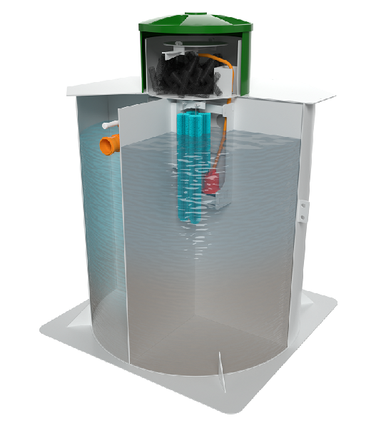 Для удобства монтажа и обслуживания, станция укомплектована быстро съемными коннекторами для подключения насосов к элементам станции (система орошения биологической загрузки,принудительный сброс) полками для установки насосов, крепления для ершовой загрузки.  Цилиндрическая форма станции равномерно распределяет давления грунта, что препятствует сдавливанию станции, дно станции оснащено грунтозацепами, что предотвращает выдавливание станции из грунта.