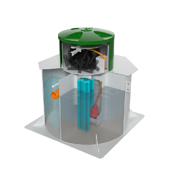 Биозагрузка необходима для закрепления и размножения колоний микроорганизмов, которые питаются органикой, содержащейся в сточной воде.Система биологической загрузки полностью состоит из полимерного материла. Срок службы 50 лет.