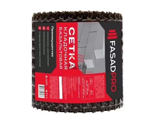 Сетка базальтовая кладочная FasadPro 25х25 мм, 0,25х50 м, 30/30 кН/м, Л
