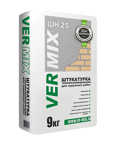 Штукатурка РЕАЛ теплоизоляционная для наружных работ VERMIX ШН25 9кг Штукатурка РЕАЛ теплоизоляционная для наружных работ VERMIX ШН25 9кг Штукатурка РЕАЛ теплоизоляционная для наружных работ VERMIX ШН25 9кг