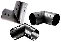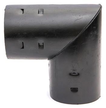 Отвод представляет собой пластиковый элемент в виде угла со специальными фиксирующими выступами с внутренней стороны, обеспечивающими надежное соединение, либо может поставляться в гофрированном виде. Предназначен для создания поворота дренажной системы под углом 90º. Расшифровка маркировки: d 110 - диаметр трубы в мм, с которой используется отвод